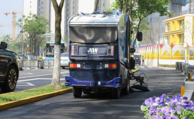 無人駕駛清掃車具備精準泊車、貼邊清掃、實時顯示位置信息等功能,還可以自主識別交通信號燈、自動識別障礙物等。