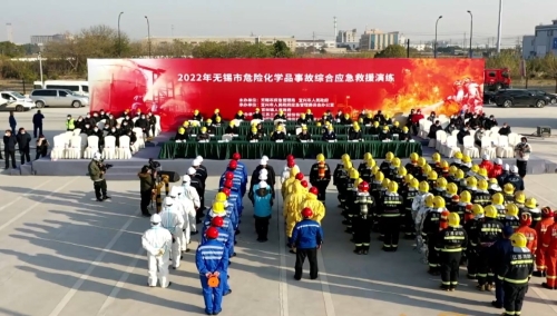 12月15日,2022年無錫市危險化學品綜合應急救援演練在位于宜興市官林鎮(zhèn)的新材料產業(yè)園區(qū)?;吠\噲雠e行。
