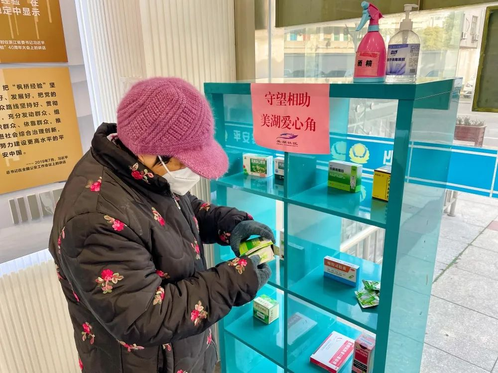 “最近陸續(xù)有居民往里面放酒精、口罩、藥品等,還有來取藥的,都是拆開一盒藥拿走自己需要的量再放回去。”美湖社區(qū)警務(wù)站愛心角的負責人許逸斌說。