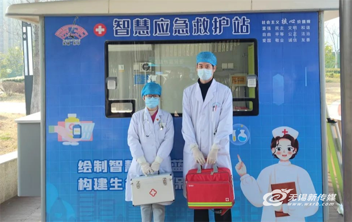 在東亭街道體育公園處,一處核酸小屋變身為“智慧應急救護站”,在為群眾提供基礎公共衛(wèi)生物品服務的同時,同步配備有應急擔架、AED心臟除顫儀等急救設備,便于開展急救處置。