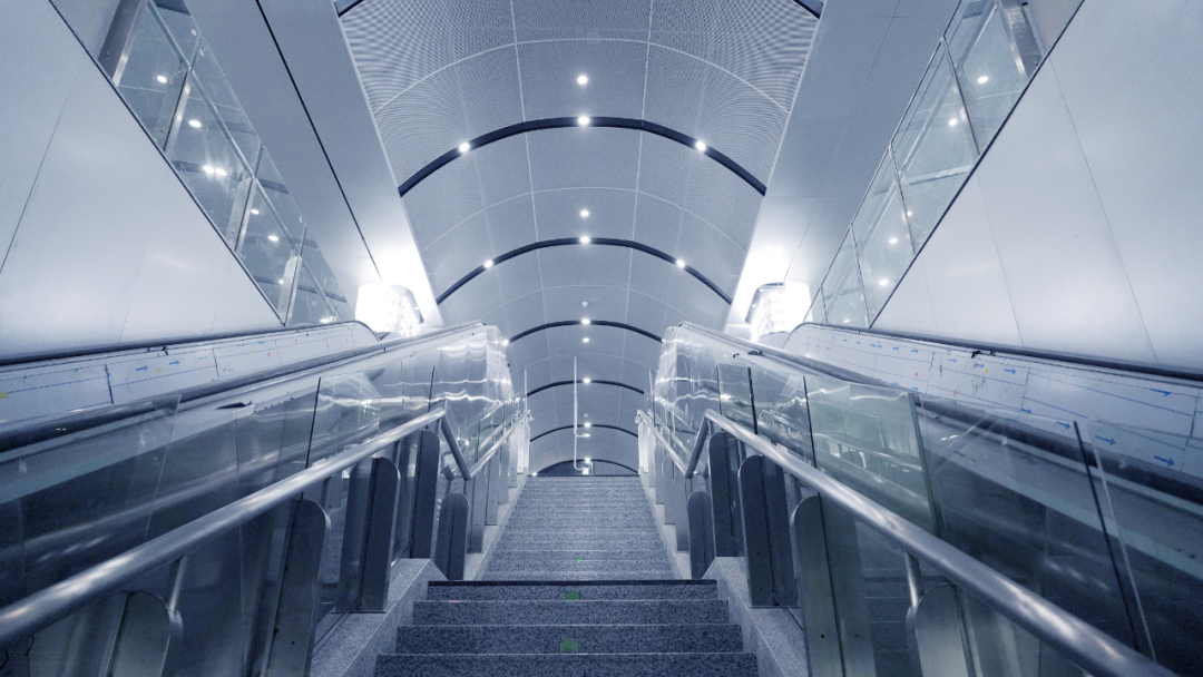 中山公園站為S1線北起第二座車站,位于人民中路與虹橋北路交叉口處,為地下二層島式車站。中山公園站整體采用簡約大氣的“竹簡風(fēng)”設(shè)計,造型模擬書卷形態(tài),采用并列的三連拱搭接空間層次,簡潔大方,設(shè)計精美。