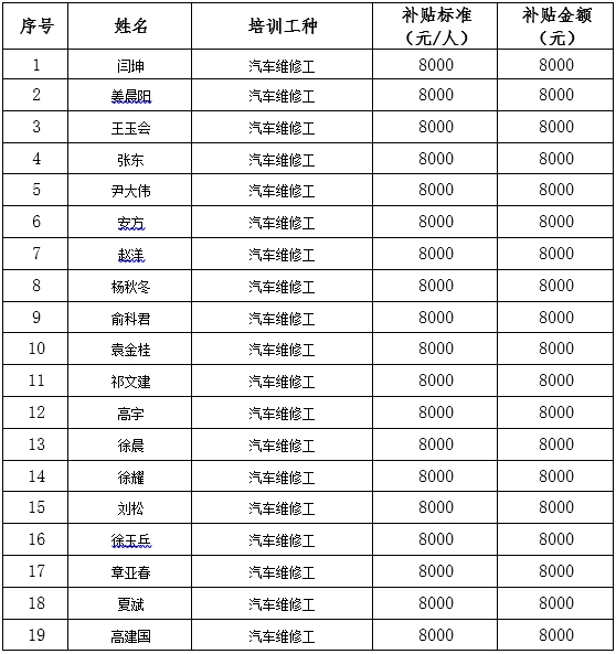 根據(jù)《省人力資源社會(huì)保障廳 省財(cái)政廳關(guān)于組織2024年度高級(jí)技師崗位技能提升培訓(xùn)的通知》(蘇人社函〔2024〕170號(hào))精神,經(jīng)審核,共有46人符合高級(jí)技師崗位技能提升培訓(xùn)補(bǔ)貼條件,其中無(wú)錫市本級(jí)44人,江陰2人?,F(xiàn)將名單公示如下: