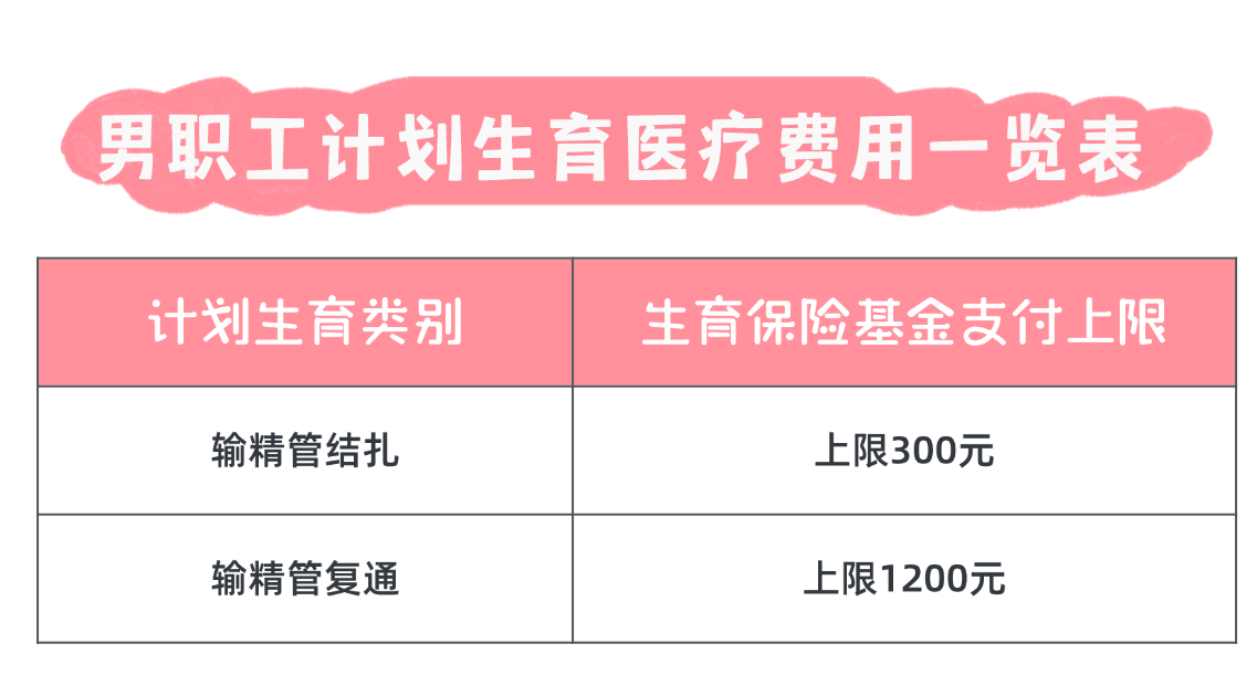 參加生育保險的職工實施輸精管結(jié)扎以及復(fù)通手術(shù)等,所發(fā)生的符合生育保險規(guī)定的醫(yī)療費(fèi)用,生育保險基金支付標(biāo)準(zhǔn)為: