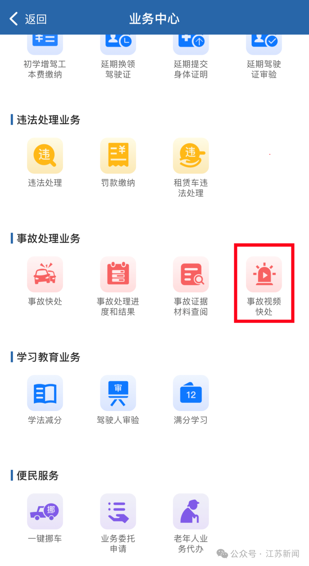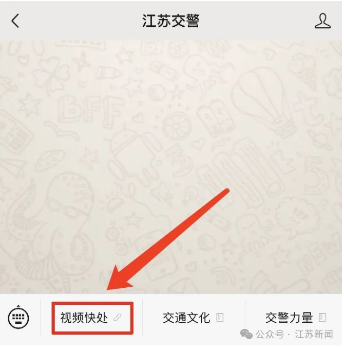 方法一:通過“江蘇交警”微信公眾號(hào)或者各地公安交管部門微信公眾號(hào)點(diǎn)擊“視頻快處”;