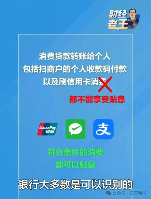 消費(fèi)貸款轉(zhuǎn)賬給個(gè)人,包括掃商戶的個(gè)人收款碼付款,以及刷信用卡消費(fèi),都不能享受貼息;