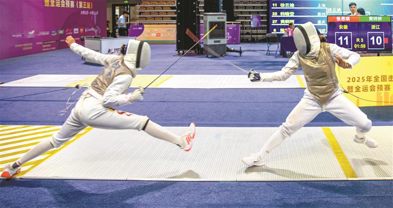 昨日(9月6日)下午,惠山區(qū)全民健身中心內(nèi),劍尖輕點(diǎn)、步伐迅捷,2025年全國擊劍錦標(biāo)賽暨全運(yùn)會預(yù)賽第三站正式拉開戰(zhàn)幕(如圖)。來自全國49個(gè)代表單位的648名運(yùn)動(dòng)員、教練員及工作人員匯聚于此,展開為期六天的激烈角逐。