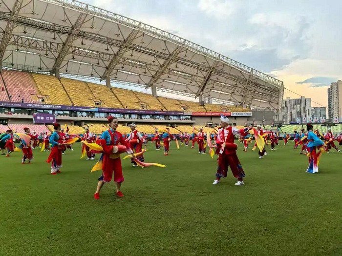 為了把這項(xiàng)國(guó)家級(jí)非遺的最高演出水平呈現(xiàn)在“蘇超”無(wú)錫賽場(chǎng),延安文化發(fā)展集團(tuán)組成了一支實(shí)力強(qiáng)勁的安塞腰鼓演出陣容。“這支隊(duì)伍中,延安歌舞劇團(tuán)的演員為主力軍,同時(shí)抽調(diào)了延安民族管弦樂(lè)團(tuán)、延安市寶塔區(qū)民眾劇團(tuán)、安塞民間藝術(shù)培訓(xùn)中心、延川山花文化演藝集團(tuán)等多家演出團(tuán)隊(duì)人員聯(lián)袂演出。”延安文化發(fā)展集團(tuán)副總經(jīng)理郭延偉介紹。