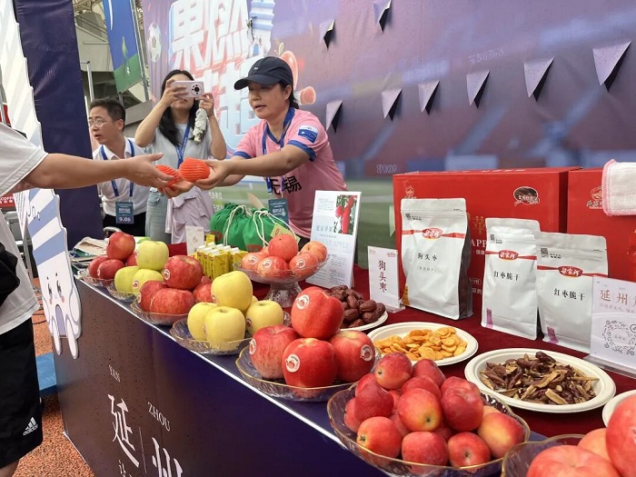 延安紅棗果形飽滿(mǎn)如珠、延安小米圓潤(rùn)金黃……市集現(xiàn)場(chǎng),包括延安蘋(píng)果在內(nèi)的延安三大標(biāo)志性農(nóng)特產(chǎn)品一一亮相。“還有一些蘋(píng)果的衍生品,像蘋(píng)果片、蘋(píng)果醋等等,以果為媒,讓幫扶情誼在‘蘇超’的熱血氛圍中持續(xù)升溫。”馮瑾告訴記者,不僅如此,他們還把延安蘋(píng)果作為城市伴手禮贈(zèng)送給了此次參賽的“蘇超”隊(duì)員。
