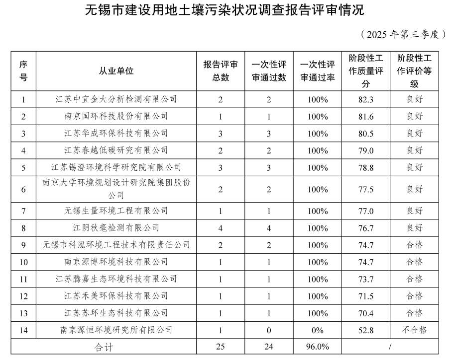 | 內(nèi)容概述 | 無錫市2025年第三季度建設(shè)用地土壤污染狀況調(diào)查報告評審情況 | ||||