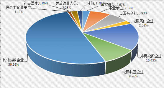 2025年三季度實(shí)繳職工數(shù)按不同性質(zhì)單位分類占比圖