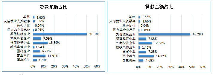 2025年三季度職工貸款筆數(shù)及貸款金額按單位性質(zhì)分類占比圖
