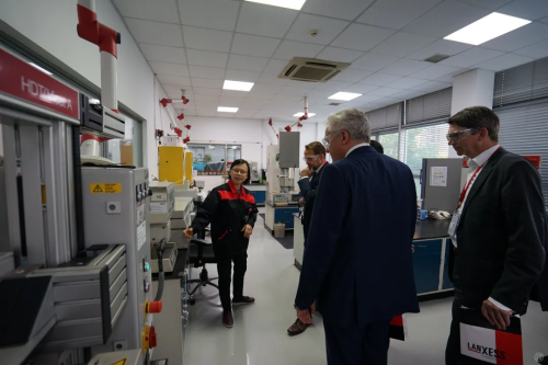 ▲2018年5月,勒沃庫(kù)森市長(zhǎng)訪(fǎng)錫參觀(guān)朗盛公司