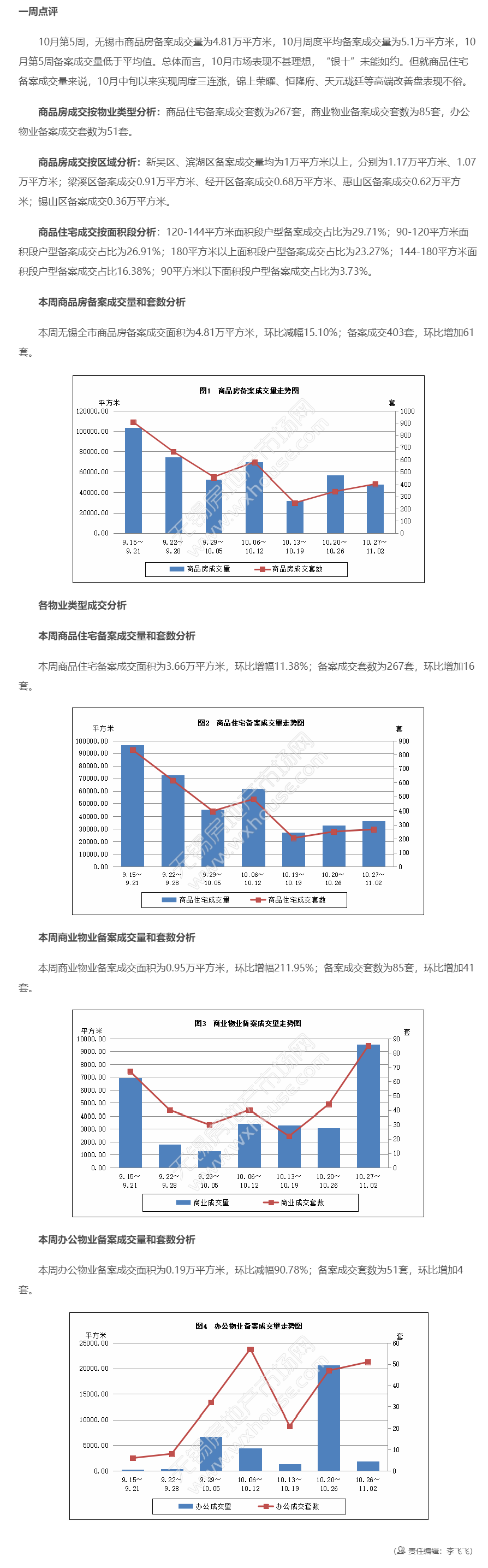 10.27~11.02無錫商品房一周備案成交4.81萬平方米 |