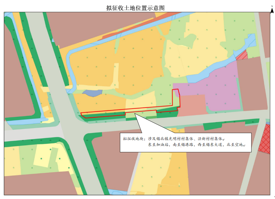 本次擬征收土地位于錫北鎮(zhèn)光明村村集體、涇新村村集體范圍內。擬征收土地位置詳見附圖。