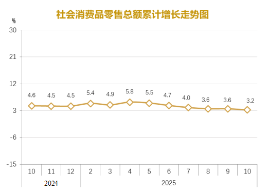 | 內(nèi)容概述 | 2025年1-10社會(huì)消費(fèi)品零售總額增長(zhǎng)3.2% | ||||