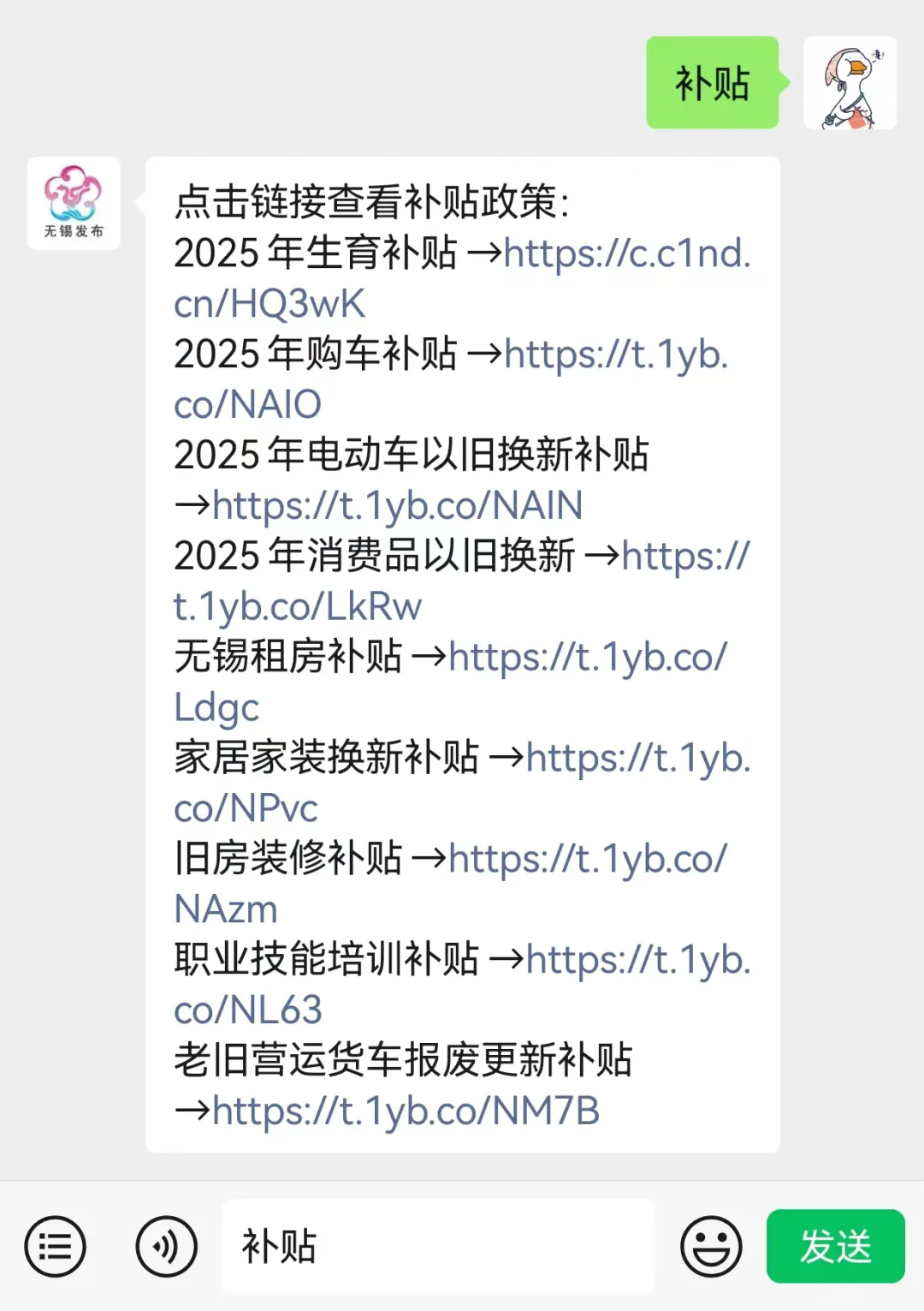 2. 在“無(wú)錫發(fā)布”微信公眾號(hào)對(duì)話框