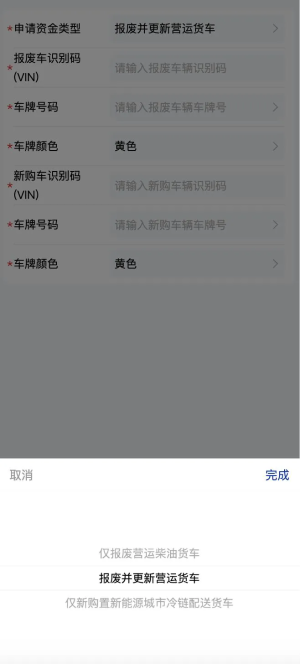 3.請(qǐng)根據(jù)自身情況選擇“僅報(bào)廢老舊營(yíng)運(yùn)貨車、報(bào)廢并更新營(yíng)運(yùn)貨車、僅新購(gòu)新能源城市冷鏈配送貨車”三種類型之一進(jìn)行申報(bào),提交后不得更改。