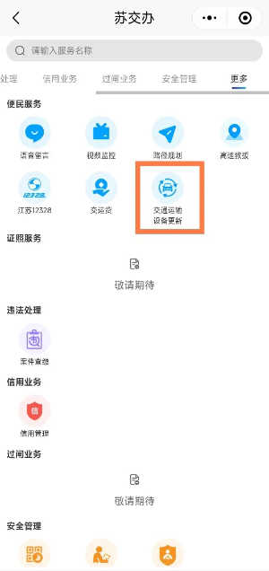 2.進(jìn)入“更多”欄目,選擇“交通運(yùn)輸設(shè)備更新”。