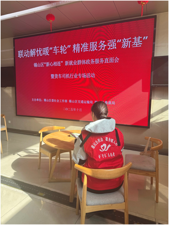 為進(jìn)一步精準(zhǔn)推進(jìn)靈活就業(yè)人員公積金相關(guān)政策,2025年10月24日上午,錫山分中心宣傳小分隊走進(jìn)由錫山區(qū)社工部、錫山區(qū)交通局、錫山區(qū)數(shù)據(jù)局聯(lián)合舉辦的“聯(lián)動解憂暖‘車輪’ 精準(zhǔn)服務(wù)強‘新基’”--錫山區(qū)“新心相連”新就業(yè)群體政務(wù)服務(wù)直面會暨貨車司機行業(yè)專場活動現(xiàn)場,開展住房公積金靈活就業(yè)人員繳存政策宣傳活動。